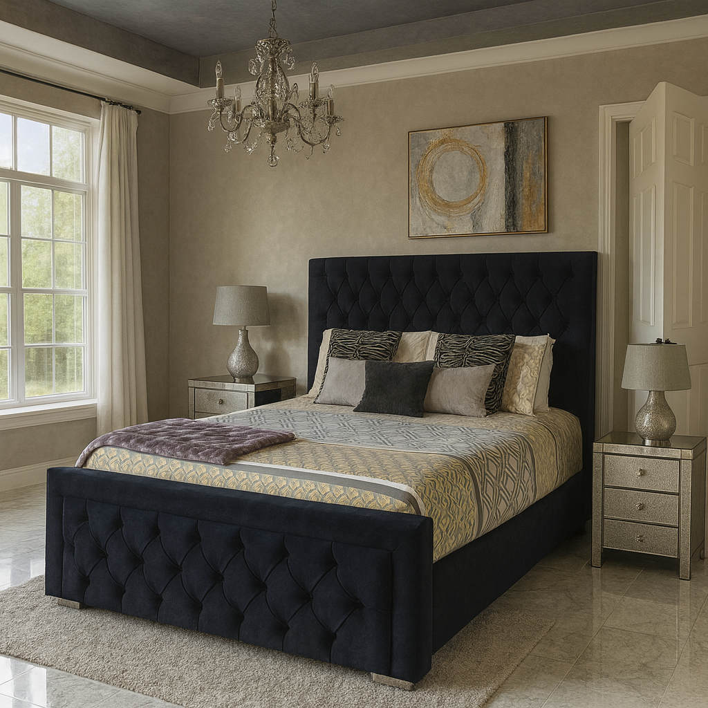 Make a grand statement with the Chesterfield Padded Bed Frame. A tall, deeply tufted headboard and matching footboard give that classic Chesterfield look—rich, cushioned, and luxurious from every angle. Upholstered by hand for a plush feel, this frame instantly elevates any master bedroom.