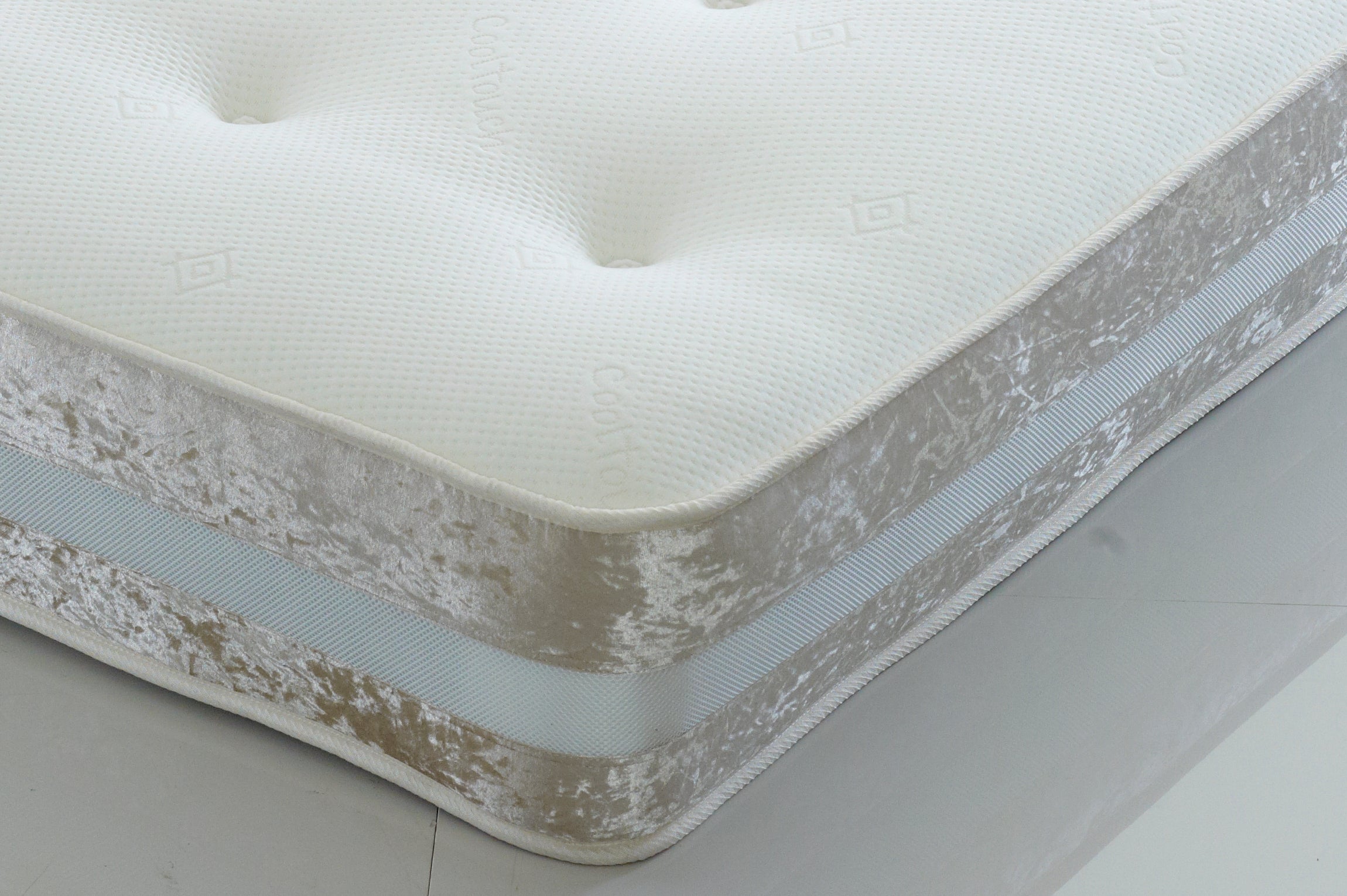 The Perth Mattress offers a soft/medium rating, featuring 13.5-gauge open coil springs and memory foam for a blend of comfort and support. The 3D border effect provides additional breathability, while the hand-tufted finish ensures durability. With a dual-sided design, this mattress offers versatility and longevity, making it a great choice for those seeking a comfortable, supportive, and affordable mattress.