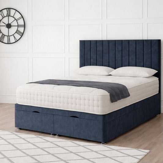 A perfect harmony of refined aesthetics and hidden functionality. The paneled headboard adds a modern touch while the ottoman base offers expansive storage hidden beneath luxurious comfort.