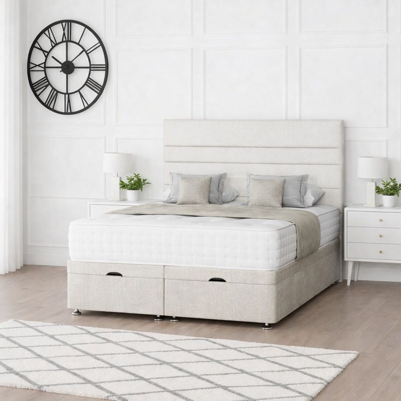 • Ottoman Storage Base: Opens smoothly with a gas lift to reveal deep, spacious storage underneath.